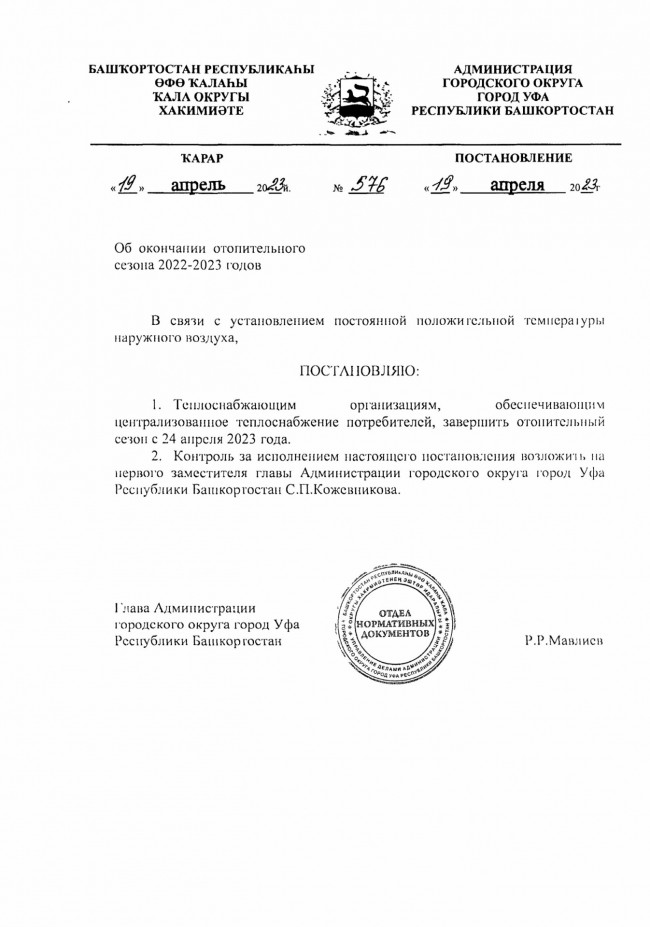 Окончание отопительного сезона 2022-2023 годов