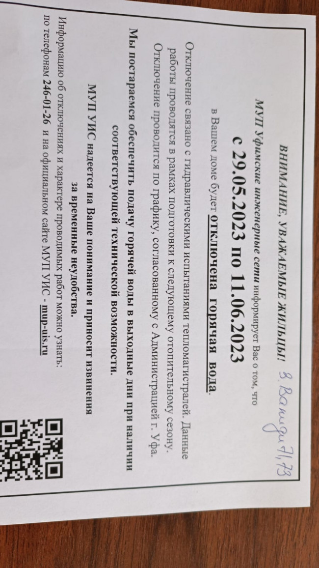 ВНИМАНИЕ ОТКЛЮЧЕНИЕ ГВС дом: ул.Заки Валиди, д.71